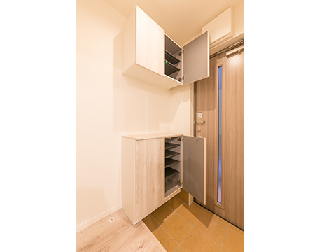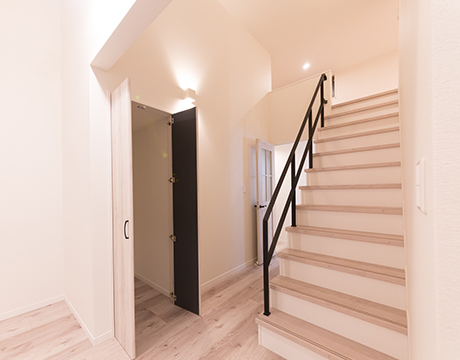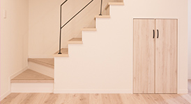 無駄なスペースになりがちな固定階段下には収納スペースを設置。