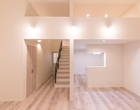LDK上部には固定階段で昇降できる大型ロフトを設置。