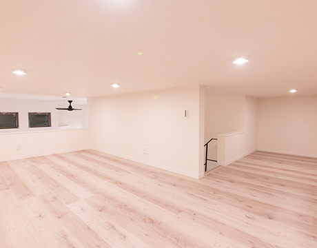 また、固定階段で行き来できるので、大型家電、家具などの収納でも出し入れが楽にできます。 -