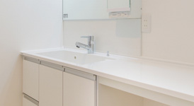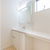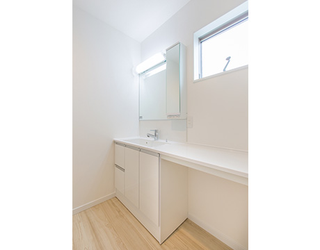 カウンタータイプの洗面化粧台がある洗面所は、朝の身支度にゆとりの気持ちを持たせてくれます。