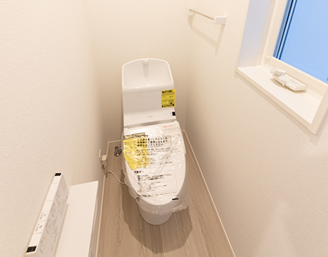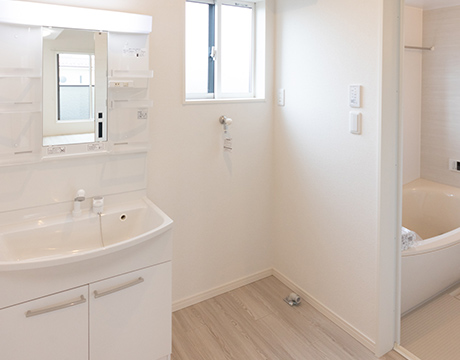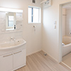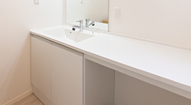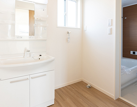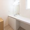 カウンタータイプの洗面化粧台がある洗面所は、朝の身支度にゆとりの気持ちを持たせてくれます。