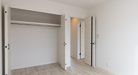 各部屋に大型クローゼットが付いており、お部屋に荷物があふれるようなことがありません。