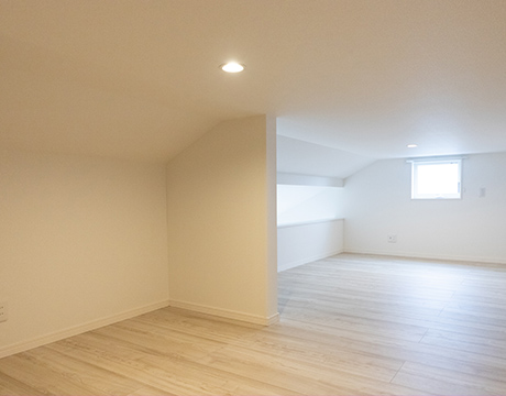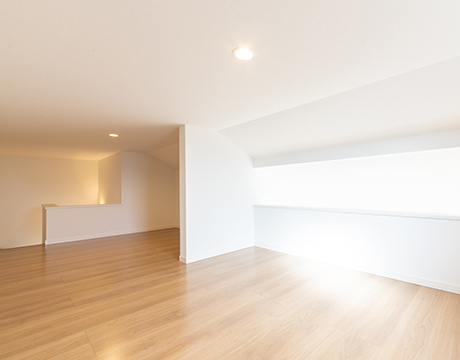 10帖という大型ロフトなので、収納スペースとしても利用だけでなく、寝室や書斎、子供部屋などのプライベートな空間として利用することができます。ロフトですので、天井は低めですが、秘密基地のような空間で大人も楽しめる空間です。
